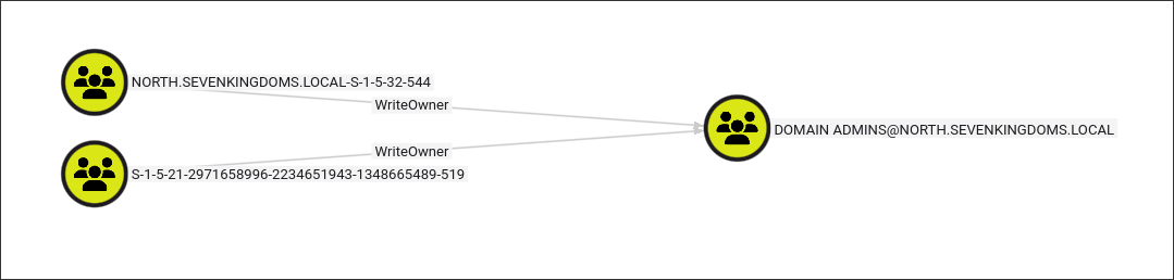 As seen in the image above and the LDAP output, we have discovered a way to escalate privileges: robb.stark is able to add itself to the Domain Admins group through the WriteOwner privilege.